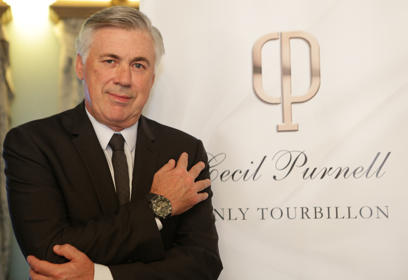 Carlo Ancelotti je tekom svojega trenerskega staža bil največkrat opažen z urami IWC, predvsem je rad nosil modela Portugieser Chronograph (8.000 €) in Portugieser Perpetual Calendar (40.000 €). Pred nekaj leti pa dobil ambasadorsko vlogo urarja Cecil Purnell. Njihovi vstopni modeli ur se začnejo pri 400.000 evrih.