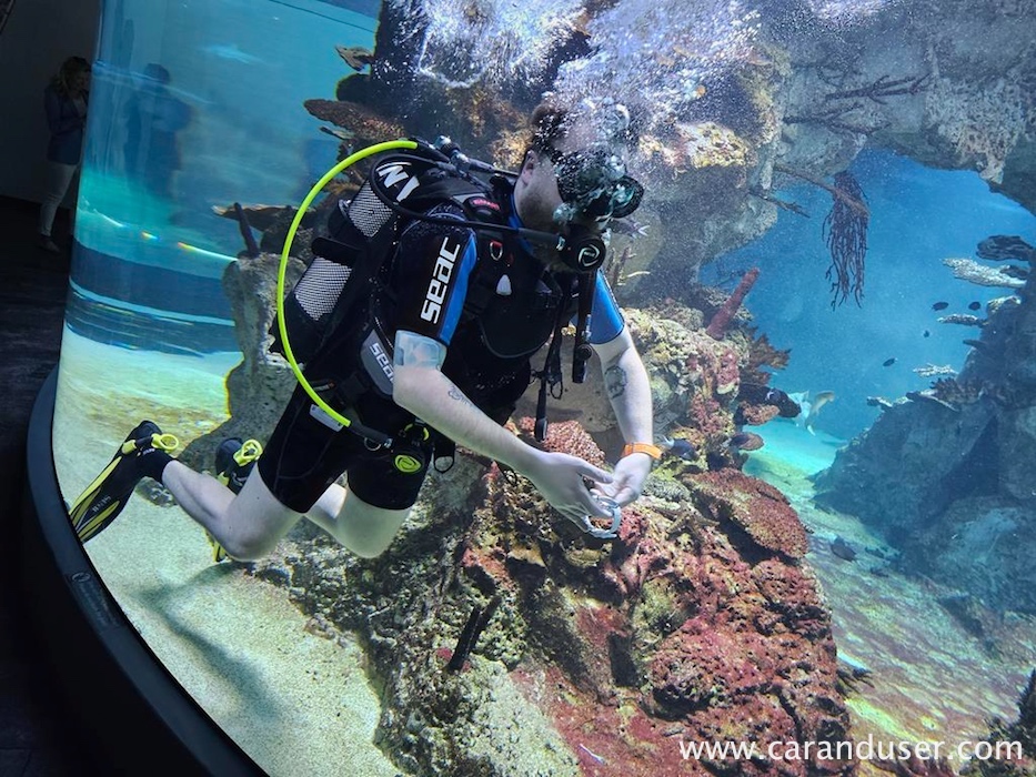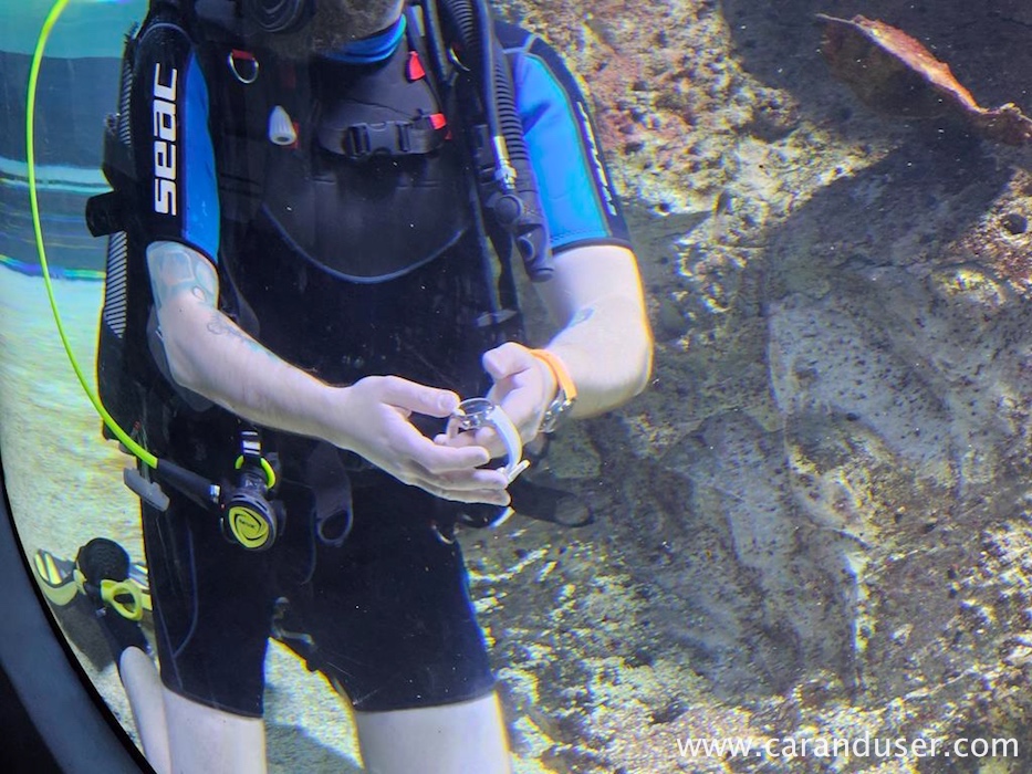 In ker smo ravno bili v stavbi z vodo, smo potapljaške specifikacije tudi preizkusili. Demonstracijsko presenečenje je pripravil potapljač, ki nam je skozi steklo razkazoval nove časomere, medtem ko so okoli njega krožile raznorazne morske živali. Kako je vse skupaj izgledalo, si poglejte tukaj: