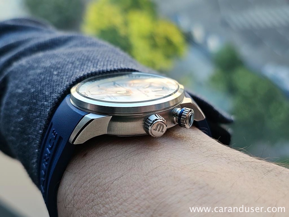 Maurice Lacroix Pontos S Diver je sodobna različica potapljaške ure s kompresijsko zasnovo tesnjenja, ki nekako spominja na časomere iz 70. let prejšnjega stoletja. To vrsto ohišja je zasnoval Ervin Piquerez, njegova posebnost pa je ta, da ima dve kroni – ena za navijanje mehanizma in nastavitev časa (in datuma, če obstaja), druga pa za upravljanje notranje vrtljive lunete.