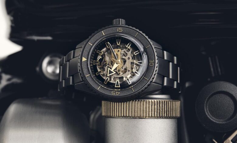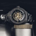 Visokotehnološko keramično ohišje v premer meri 43 mm, nudi do 300 metrov vodotesnosti in čudovit zaključek Côtes de Genève. Dizajn zaokrožuje mat črna zapestnica iz visokotehnološke keramike s trojno zaponko iz titana, opremljeno s keramičnimi gumbi.