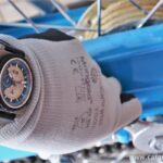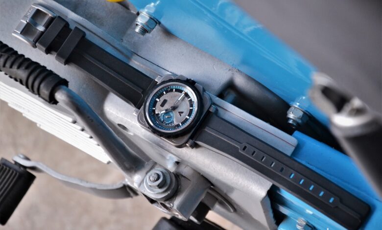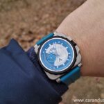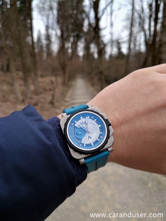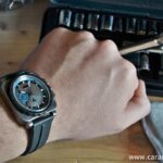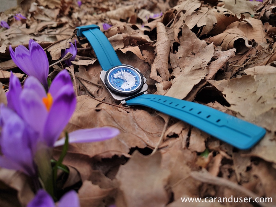 Za razliko od edicije Mustang P-51, ura RNR Akronik lepše sede na in okoli zapestja, kjer ustvari čudovito prezenco. Kljub temu, da dimenzije ohišja niso pretirane, nestandardna kvadratna oblika (prevladujejo okrogle ure) ustreže tudi večjim premerom zapestja. Ne glede na izbiro paščka je nošnja udobna. Na voljo so tri različice – moder ali črn pas iz kavčuka ter zeleni tekstilni pašček. Sistem za hitro menjavo je preprost in učinkovit, zato sem se ga pogosto posluževal. Konec koncev pašček precej spremeni podobo in hkrati tudi namembnost ure. Črn je idealen za v delavnico, moder za poletna potepanja, medtem ko je zelen super modni dodatek za spomladanske ali jesenske dni. Seveda pa obstaja še opcija, da dokupite dve vzmeti, ter pod ohišje napeljete nato pašček.