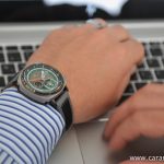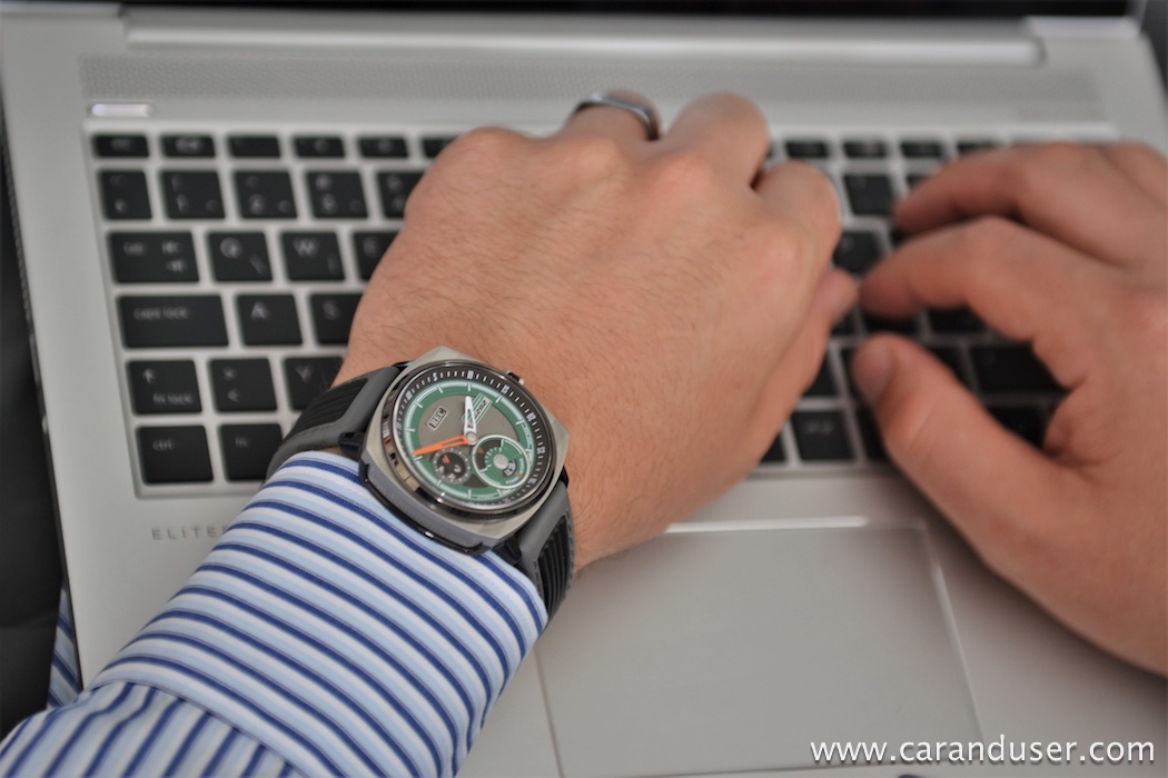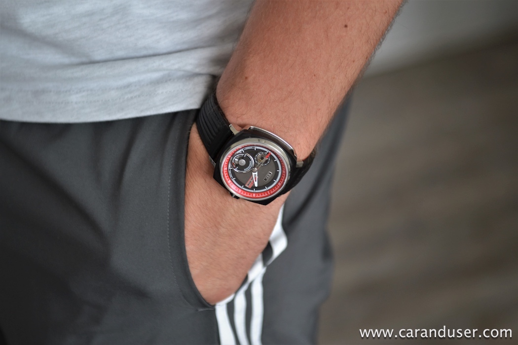 Menim, da se takšen časomer dobro poda lastniku kakšnega klasičnega Mustanga, a nekako bolj zažge, če to uro nosiš v pisarni. V urejenem delovnem okolju, se v zapestni uri elegantno skrijejo imetnikove želje in strasti.
