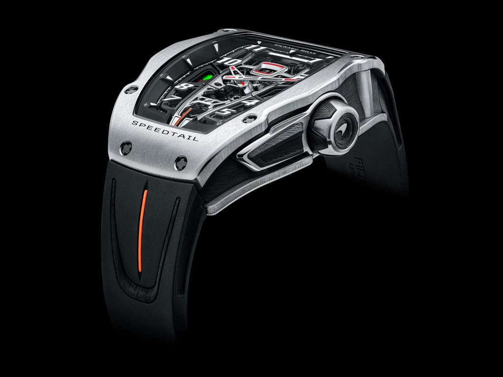 Tako kot McLaren Speedtail, ki navdušuje s hibridnim pogonom z močjo 1.070 ”konjičev” in dejstvom da pri najvišji hitrosti 402 km/h prevozi 112 metrov na sekundo, tudi istoimenska ura pooseblja njegovo veličino oziroma tehnični dosežek. Ohišje predstavlja karoserijo avtomobila, kar se odraža v širšem zgornjem delu ob 12. uri s širino 35,35 mm ter padajočo linijo v obliki kapljice proti 6. uri.