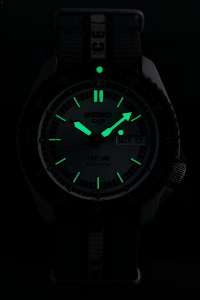 Seiko je za to izdajo uporabil barve uniform kopenskih obrambnih sil Ultra Guard (Ultra Guard Terrestrial Defence Force). Znano jekleno ohišje s premerom 42,5 mm ima na vrhu črno potapljaško luneto. Srebrna številčnica je zaključena z brusi v stilu sončnih žarkov in ima nanesene sive urne indekse ter črne oznake minut. Urni in minutni kazalec vsebujeta LumiBrite, medtem ko se sekundni kazalec ponaša z rdečo konico in LumiBrite osvetljenim zadkov v stilu lizike. Okno z dnevom in datumom se nahaja ob 3. uri, nad celotno številčnico pa se razprostira Hardlex kristal, ki pokriva tudi hrbtno stran ure oziroma ohišja.