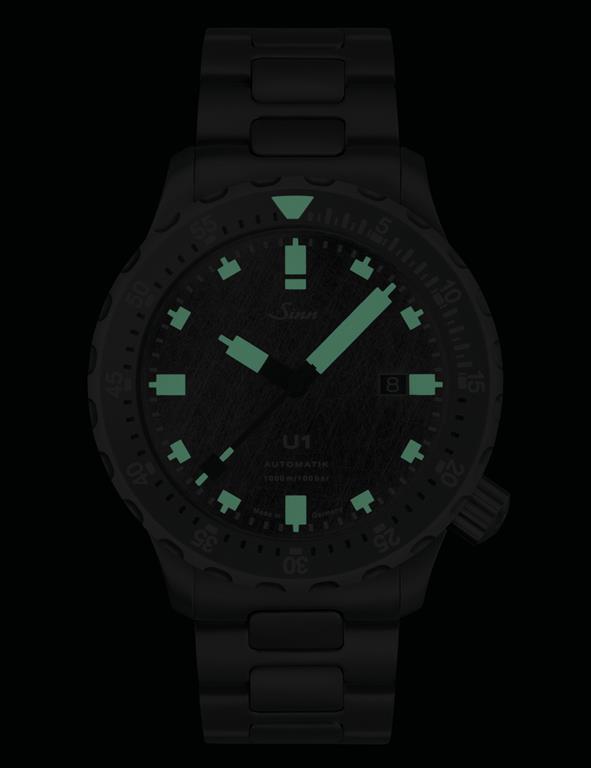 Ne glede na specifikacije je Sinn U1 ena najtrših in bolj osredotočenih potapljaških ur. U1 je eden najbolj znanih modelov nemške znamke, širok 44 mm in debel 14,7 mm, z ohišjem, okvirjem in zapestnico iz kaljenega jekla (dobesedno istega materiala, kot se uporablja za nemške podmornice). Vodotesnost je neverjetnih 1.000 metrov. Sinn U1 DS je opremljen z ravnim safirnim kristalom, vijačno krono ob četrti uri, enosmerno potapljaško luneto in obilico luminiscenčnega pigmenta na oznakah ur ter kazalcih.