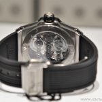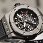 Za velika zapestja ali tiste, ki prisegate na masivne ure, bo pravi naslov Hublot Meca-10. Zajeten kos titana meri 45 milimetrov v diagonalo, v sredini katere se nahaja mogočen mehanizem s kar 10-dnevno zalogo energije. Le-tega je mogoče opazovati z vseh strani, saj je številčnica skeletne zasnove, medtem ko hrbtno stran krasi safirni kristal. Kljub zajetnim dimenzijam je nošnja lahkotna zavoljo lastnosti titana ter nameščenega paščka iz kavčuka. Slednji je hitro zamenljiv s sistemom One-Click in tako omogoča številne možnosti individualizacije. Osnovna cena modela iz titana, kakršen je tukaj v galeriji znaša dobrih 18 tisočakov. Izbira keramičnega ali zlatega ohišja pa stopničko postavi višje.