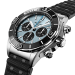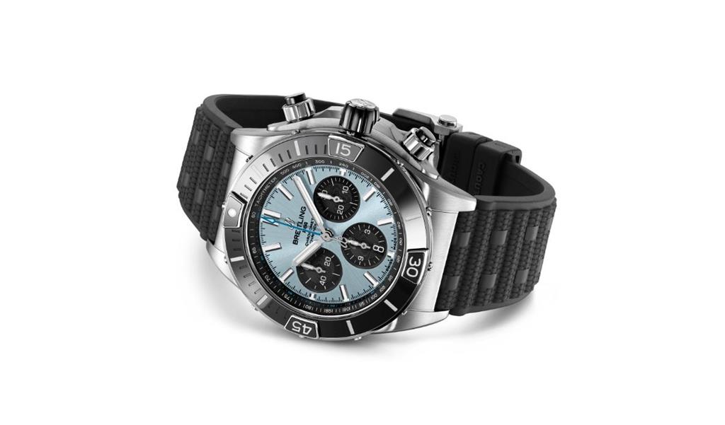 Breitling je linijo Super Chronomat, ki v naboru že ponuja šest različic v kombinaciji z jekleno zapestnico ali barvno ujemajočim tekstilnim paščkom z gumiranim notranjim delom, obogatil referenčno številko PB0136251C1S1, katera se ponaša s svetlo modro številčnico ter platinasto črno luneto.