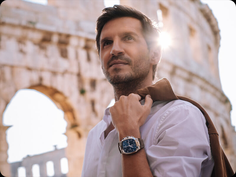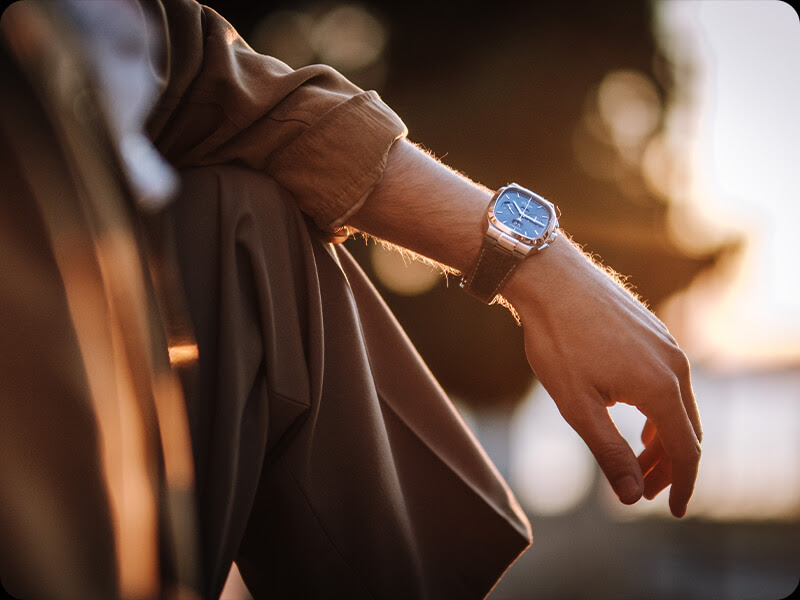 Ohišje iz nerjavečega jekla, z merami 40 mm x 40 mm in z zaobljenimi vogali, je glavna značilnost linije časomerov Seventies. Slednje daje uri vintage videz, tako prefinjen kot nezmotljiv. Novi model ponuja možnost izbire med štirimi paščki in sicer modro aligatorjevo usnje Louisiana, rjavo-sivo nubuk usnje, črn pašček iz kavčuka ter kovinska zapestnica v celoti izdelana iz nerjavečega jekla.