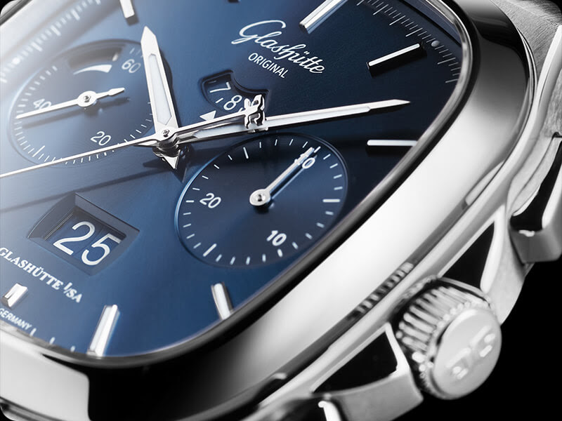 Najnovejša različica Seventies Chronograph Panorama Date s temno modro številčnico je na voljo pri uradnih prodajalcih Glashütte Original po ceni 13.200 evrov.