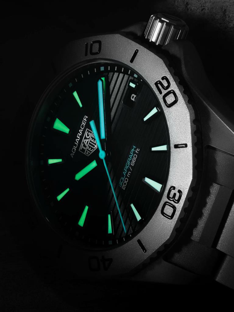 Zaradi česar predstavljeni Aquaracer 200 Solargraph resnično izstopa, sta novo peskano ohišje in zapestnica iz titana 2. stopnje, ki po mnenju TAG Heuerja izboljšuje “kakovost in vzdržljivost” ter ergonomijo, saj je posledično ura lažja in udobnejša za nošnjo, hkrati pa bolj odporna na praske in udarce, če boste morda z njo raziskovali oceane ali hodili po najbolj oddaljenih kotičkih na Zemlji. Dimenzijsko ura ohranja premer s 40 mm, vodotesnost do 200 m ter poznane elemente s standardnega Aquaracerja, vključno s kazalci in indikatorji ur, ki svetijo v modri oziroma svetlo zeleni barvi.