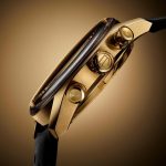 Zlato je tudi na številčnici ure in se ponaša z navpičnim bušenjem. Rumeni ton ure razbijata črni kronografski podštevilčnici ob 3. in 9. uri, ki navdih jemljeta iz arhiva. Kjer bi se snovalci lahko malce bolj potrudili, je izbira barve podlage za okence z datumom ob 6. uri, saj se bela ne najbolj ujema s celotno podobo časomera.