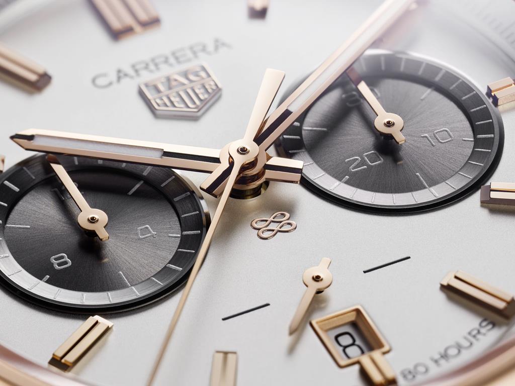 Ohišje je iz 18k roza zlata, vključno z gumbi kronografa in krono. Kazalci in označevalci ur so rožnato-zlate barve, kakor tudi urne označbe. Številčnica je po barvi in videzu opisana kot srebrni opalin. Proti vrhu številčnice se bohoti napis Carrera nad logotipom blagovne znamke. Na dnu številčnice je besedilo z napisom “Heuer 02 80 Hours”, ki se nanaša na mehanizem.