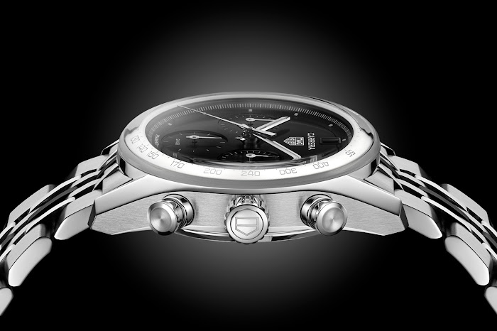 Številčnica ima tri-compax razporeditev, z minutnim števcem kronografa ob 3. uri, indikatorjem tekočih sekund ob 6. uri in urnim števcem kronografa ob 9. uri. Beli natisnjeni logotip TAG Heuer in datum ob 12. uri dopolnjujeta številčnico. Zapestnica sledi sedemvrstnemu dizajnu TAG Heuer, ki je bil ponovno uveden v začetku tega leta. Za to izdajo je bila predelana s črnim PVD na osrednjih členih, da odraža kontrastni videz ure.