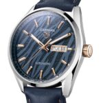 Izrezan motiv tigra na številčnici združuje globoko skrilasto modro vodoravno brušeno glavno površino z vdolbinami elementi v črni barvi, s skoraj asfaltno teksturo. Poleg ustvarjanja vzorca tigrastih črt, ta koncept izrezane številčnice spretno prikazuje zmožnost končne obdelave številčnice manufakture TAG Heuer. Čeprav ta dramatična barvna shema tigrastih črt zagotovo ni za vsak okus, sta izdelava in ustvarjalnost, prikazana tukaj, nedvomno impresivna.