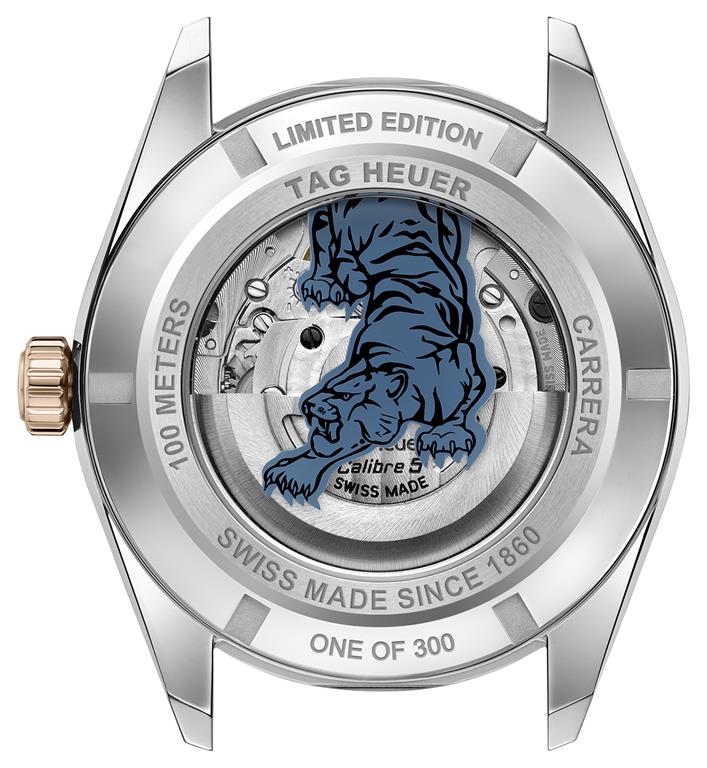 Za pogon ure skrbi avtomatski mehanizem Calibre 5, ki temelji na ETA mehanizmu in nudi do 38-ur zaloge energije. Še ena posebnost ure je vtisnjena na hrbtno stran ohišja iz safirja. V čast letu tigra, je blagovna znamka dodala stilsko podobo tigra v skrilasto modri barvi, ki čaka na plen. Tako kot standardni model, tudi ta različica ponuja uglednih 100 metrov vodotesnosti.