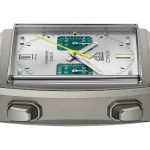 Zelena barva podštevilčnic kronografa se ujema s perforiranim usnjenim pasom ter oznakami ur na številčnici. Podlaga slednje je srebrna, brušena v stilu sončnih žarkov, kar daje uri nekakšen industrijski pridih. Piko na i ustvarijo dodatki v rumeni barvi, ki jih najdemo na indikatorju 12. ure ter sekundnem kazalcu kronografa.