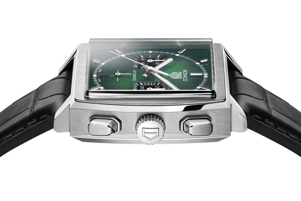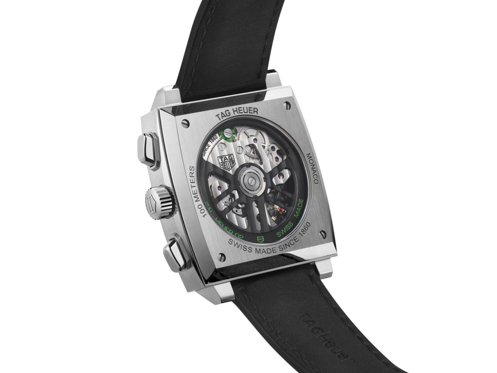TAG Heuer Monaco Green Dial temelji na “novi standardni” različici ure Monaco, kar pomeni da se v notranjosti nahaja hišni mehanizem Caliber Heuer 02, na desni strani ohišja pa najdemo gumbe kronografa. To je sodobna različica Monaca, saj je original iz dobe Steva McQueena poganjal Caliber 11, krona pa se je nahajala ob 9.uri.