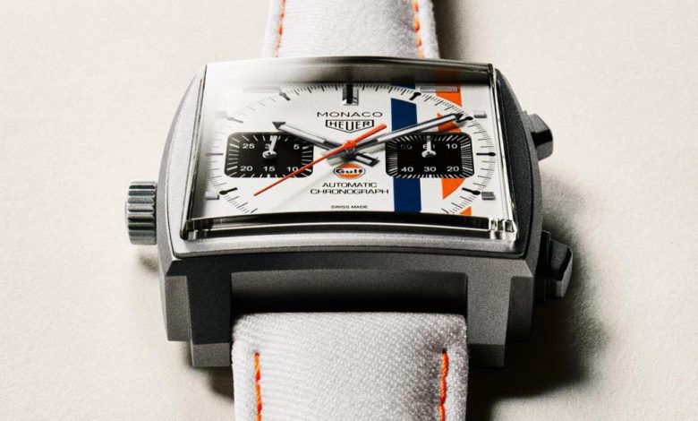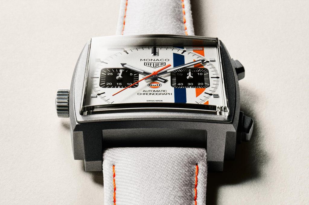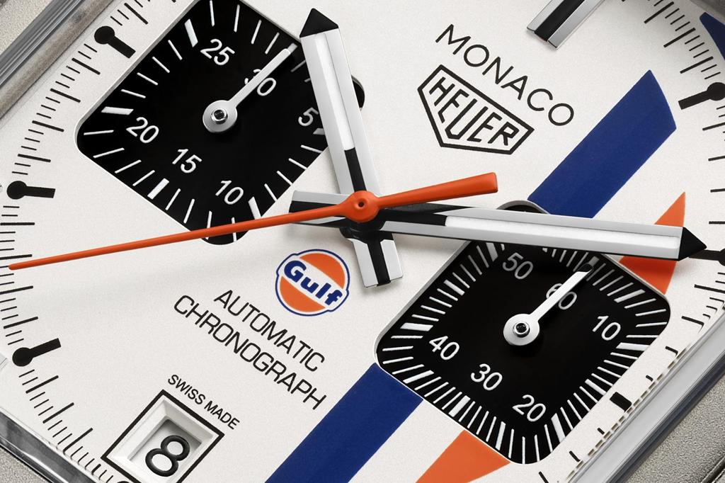 Avtomobilski navdušenci boste zagotovo prepoznali znamenito tematiko Gulf, ki je skozi desetletja krasila Porscheje, Forde ter McLarne. Gulf Oil že od leta 2007 sodeluje z urarjem TAG Heuer. Legendarna ura je meddrugim krasila zapestje Steva McQueena.