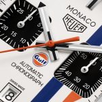 Tokratna izdaja Monaco Gulf si z aktualno linijo deli dimenzije ohišj, ki znašajo 39 x 39 mm, dočim je vodotesnost odmerjena na 100 m. Samo ohišje je izdelano iz titana, postavitev krone na levo stran ohišja pa razkriva, da se v notranjosti nahaja ‘vintage’ avtomatski kronografski mehanizem, kaliber 11, ki nudi do 40 ur zaloge energije navitja.
