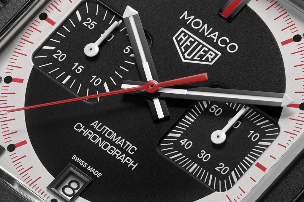 Druga zanimiva iteracija modela Tag Heuer Monaco Chronograph sliši na ime Stopwatch. Posebnost te izdaje je iskanje vzporednic s hišnimi štoparicami iz obdobja 70. let prejšnjega stoletja. Zavoljo tega je titanovo ohišje Monaca prevlečeno s črnim DLC treatmajem. Osrednji del številčnice ima črno podlago, robovi številčnice z rdečo sekundno skalo pa belo. Namen? Čitljivost oziroma berljivost merjenega časa.
