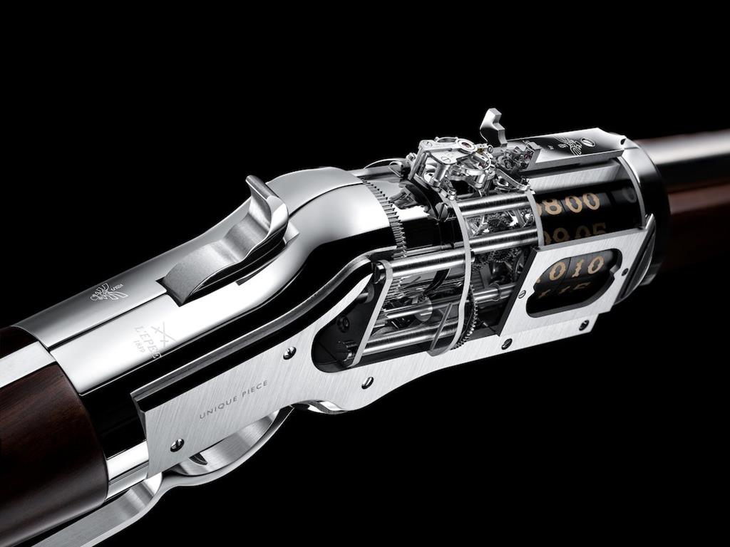Z drugimi besedami, ročno navijalni mehanizem navijemo tako, da repetiramo winchesterko. 15 nabojev je dovolj za zagotovitev 8-dnevne zaloge energije navitja. Čas v urah in minutah je prikazan na desni strani puške, medtem ko horološka umetnina ponuja številne možnosti konfiguracije – izbira lesa kopita, gravura magazina, kombinacija materialov …