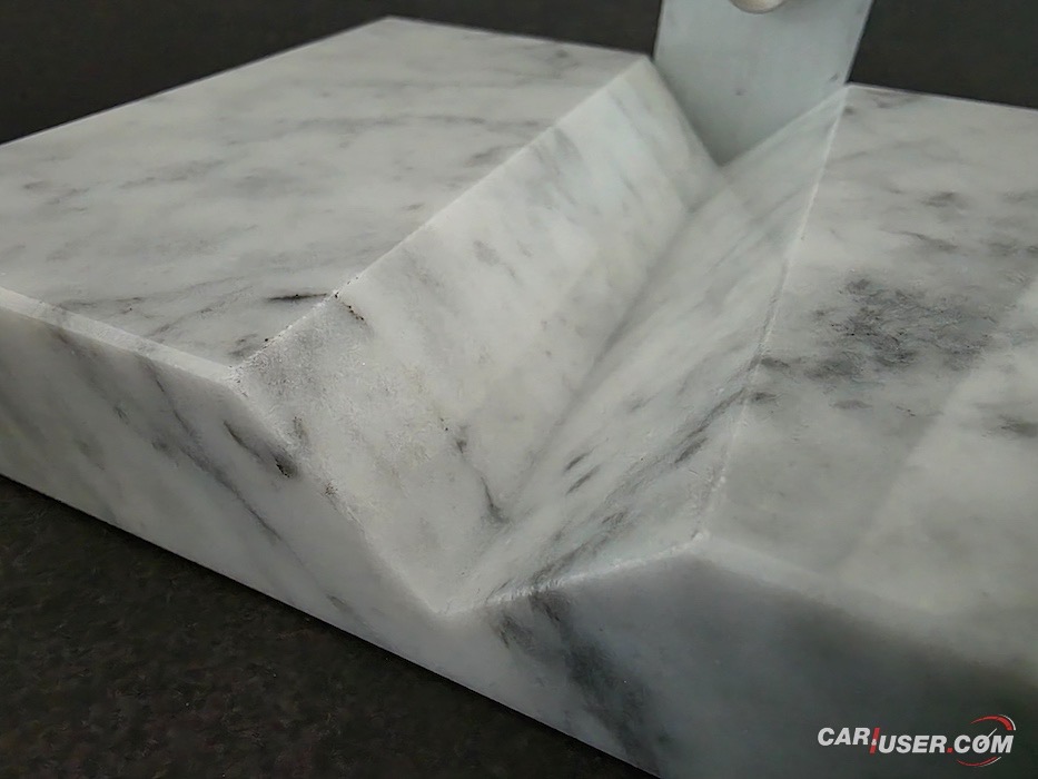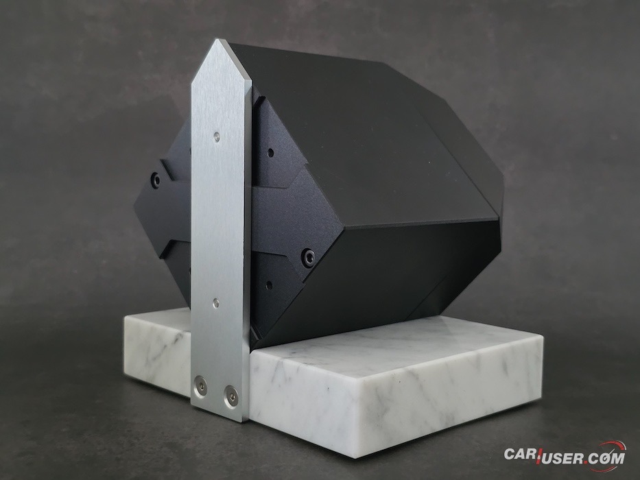 Še malo se vrnimo k specifikacijam. Navijalec meri 14 cm v višino, 14 cm v širino ter 12 cm v globino, a za umestitev v prostor so bolj pomembni podatki z izbranim podstavkom, ki je v testnem primeru bil enojni. Torej, 15,3 cm višina, 15,5 cm širina in 12,4 cm globina. Da je res govora o prestižnih materialih nam naznani masa navijalca z 1,4 kg. K temu moramo prišteti še 1,4 kg mase obdelanega marmornega podstavka, ki izvira iz pokrajine Massa-Carrara v Italiji, katera je znana po bleščeče belem marmorju. Skupno na regalu dnevne sobe stoji 2,8-kilogramski navijalec ur.