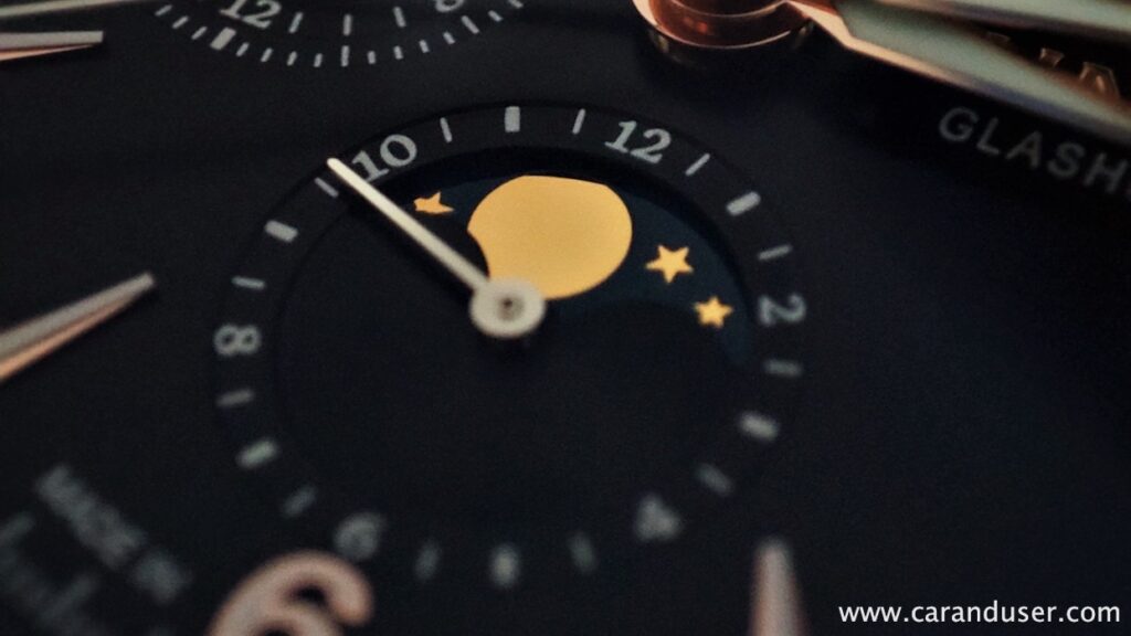 Kaj bi lahko izpostavili kot minus pri Union Glashütte Belisarju? V resnici je ta zgolj en. Velik. Recimo. Ker ura prikazuje datum, teden in mesec, hkrati je potrebno nastaviti še lunine mene in na koncu/začetku predvsem čas, boste za to potrebovali kar nekaj minut. Resda vam hišni mehanizem omogoča do 65 ur avtonomije, vendar če ste ljubitelj več različnih ur in le-to postavite v škatlo za nekaj tednov, bo usklajevanje precej zamudno.
