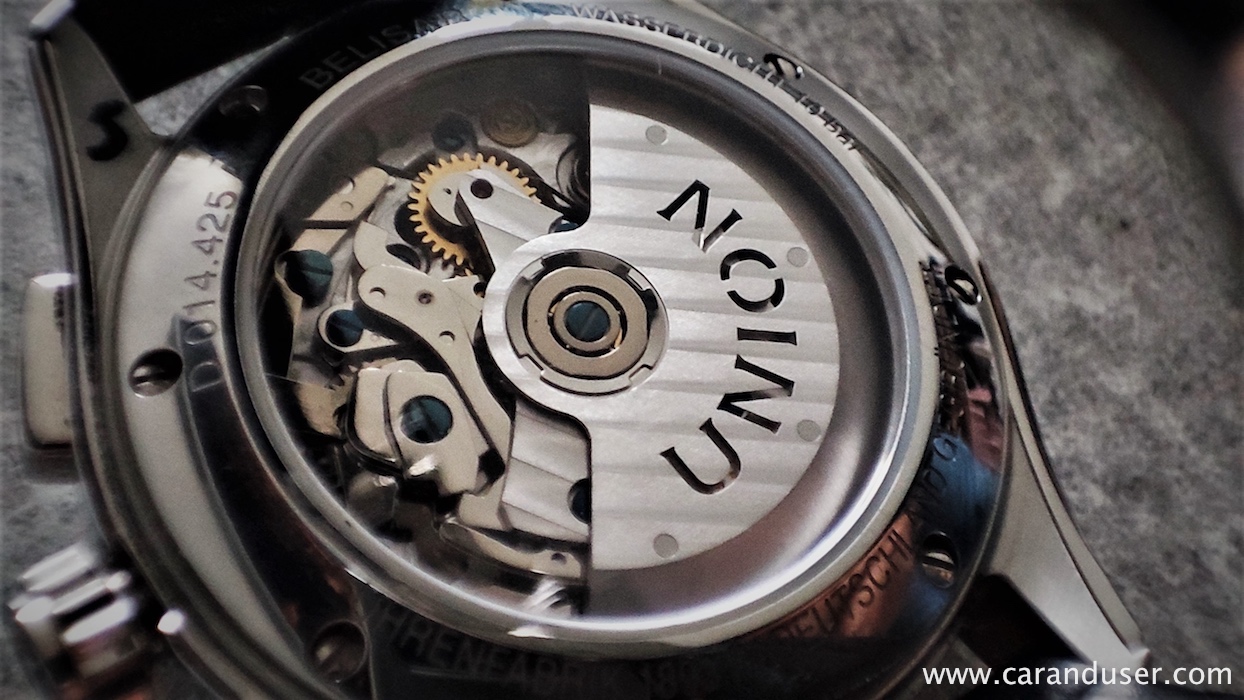 Safirno steklo zgoraj in spodaj, kjer boste lahko občudovali hišni mehanizem, ki odstira pogled na številne delujoče zobnike ter nekatere ob vseh 25 draguljev. Novi avtomatski mehanizem, kaliber UNG-25.S1 ima zdaj silikonsko ravnotežno vzmet, katera ščiti pred magnetnimi polji ter izboljšano energijo navitja do 65 ur, kar zagotavlja daljše delovanje ure.