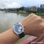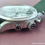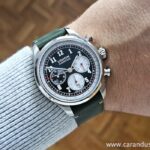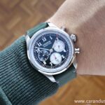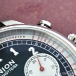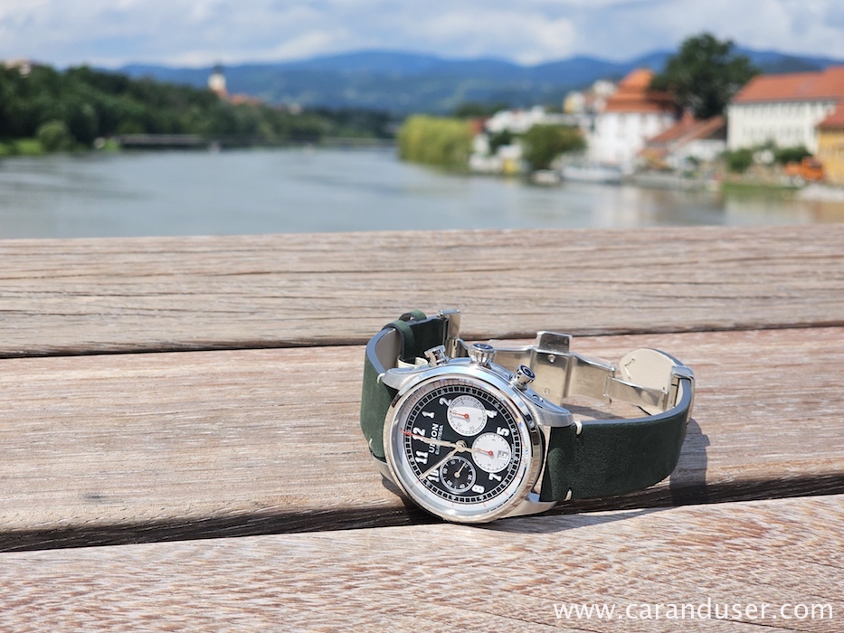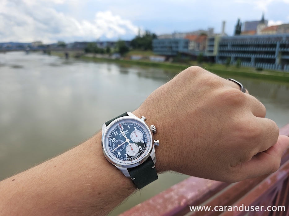 Svojevrstna posebnost sta še izstopajoči beli podštevilčnici za lažje odčitavanje merjenega časa kronografa ter interesantno označena gumba kronografa z ikono ” zagona” ter ”osvežitve”, za ponastavitev kronografske funkcije. Vse našteto doprinese k izkušnji na zapestju, saj ponosni nosač neprestano išče nove detajle, ki ga navdušijo, pa naj si bo na številčnici ali samem ohišju.