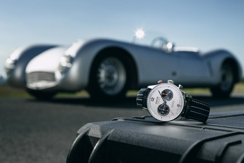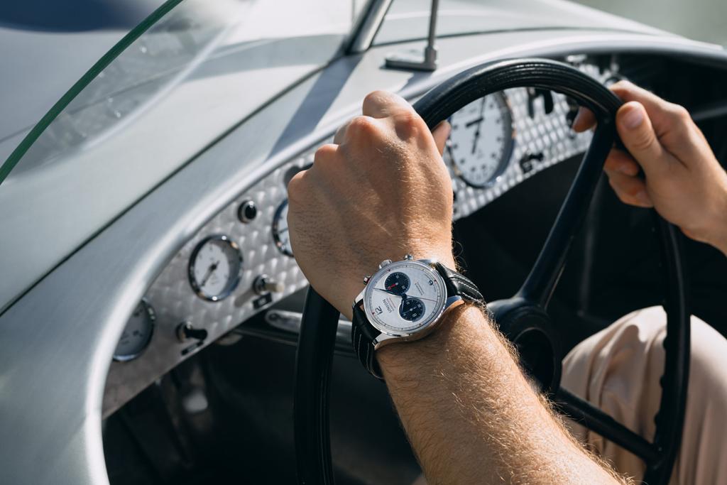 Union Glashütte kot partner relija Sachsen Classic, ki bo ljubitelje klasičnih avtomobilov pripeljal na Saško od 14. do 16. avgusta, predstavlja posebno zapestno kreacijo Noramis Chronograph Sachsen Classic 2025.