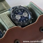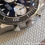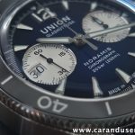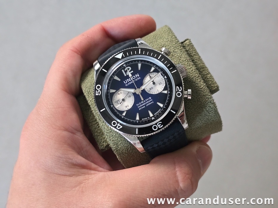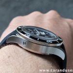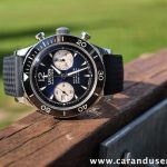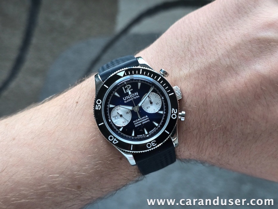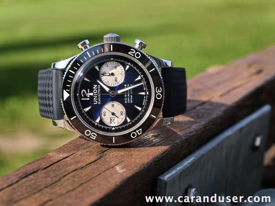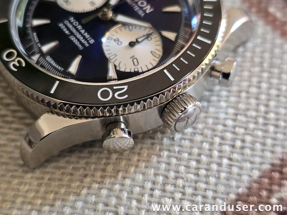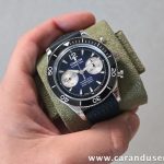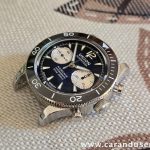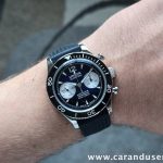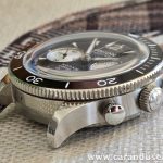 Ni ravno pogosta praksa, da se v potapljaški uri znajde kronografski mehanizem. Ne le, da se ni priporočljivo potapljati s časovnim pritiskom, ampak tudi gumbe kronografa se naj ne bi aktiviralo pod vodo. Potapljaški recept je torej nekako obrnjen na glavo, kar pa me spremeni dejstva, da me je ura dodobra očarala.