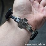 Ponovno se bom obregnil ob stvar, ki jo vedno znova poudarjam pri preizkusih ur znamke Union Glashütte. To je varnostna zaponka v obliki metulja. Deluje korektno, vendar se ne najbolj diskretno zloži ter posledično v debelino meri skoraj kot ohišje. Opcija je, da ugodno dokupite navadno zaponko in se znebite odvečnih milimetrov pod zapestjem.