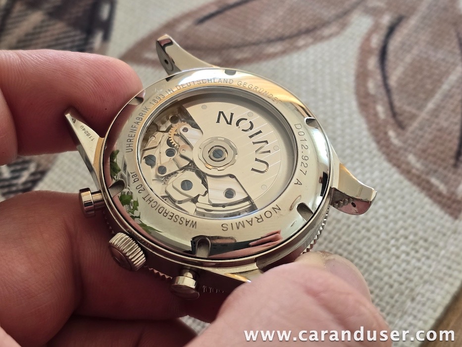 Za ljubitelje mehanike je pogled na delovanje mehanizma svojevrstna interakcija, zato je razstavno steklo hrbtne strani ohišje perfekten dodatek. Skozenj je moč ozreti avtomatski mehanizem, kaliber UNG.27.02, ki nudi do 65 ur energije navitja. Tiktaka z 28.800 alternancami na uro in je opremljen s silikonsko uravnoteženo vzmetjo, zaradi česar je mehanizem manj občutljiv na magnetna polja in temperaturna nihanja.
