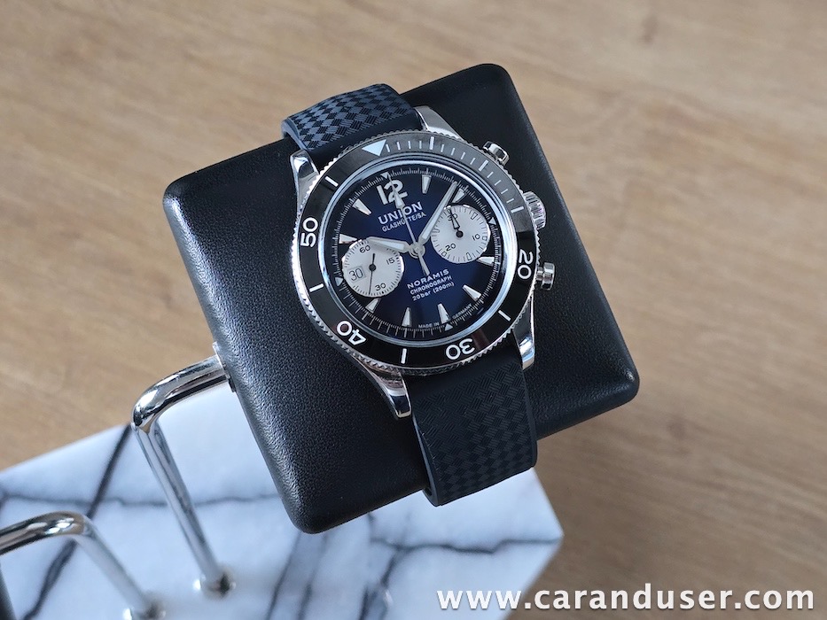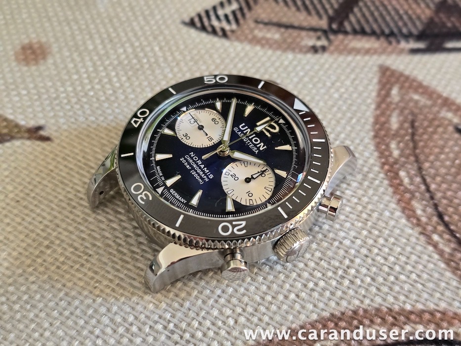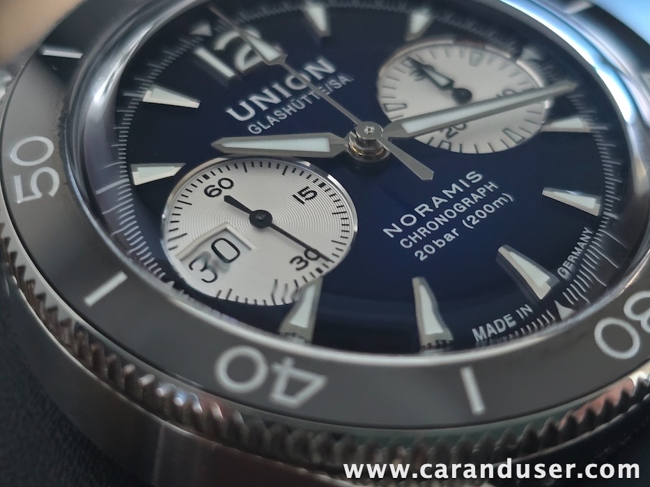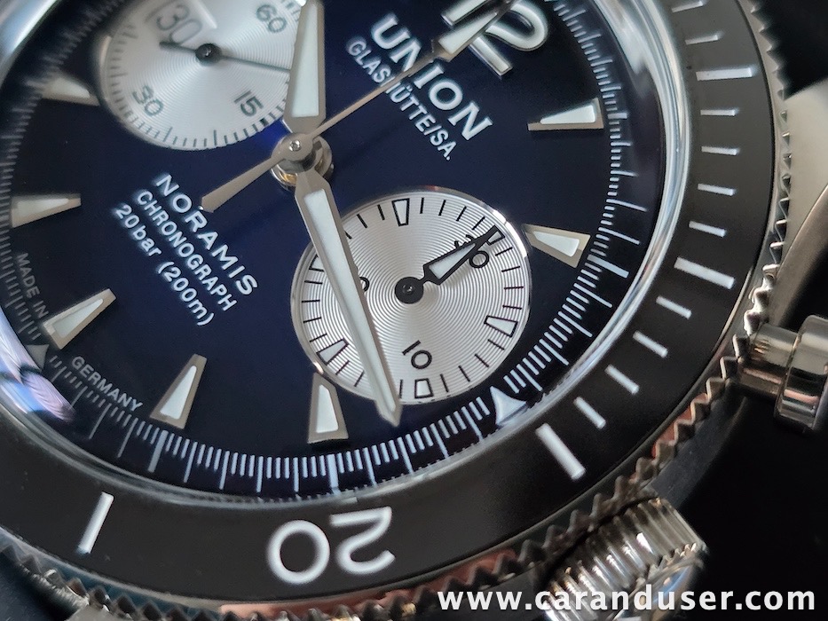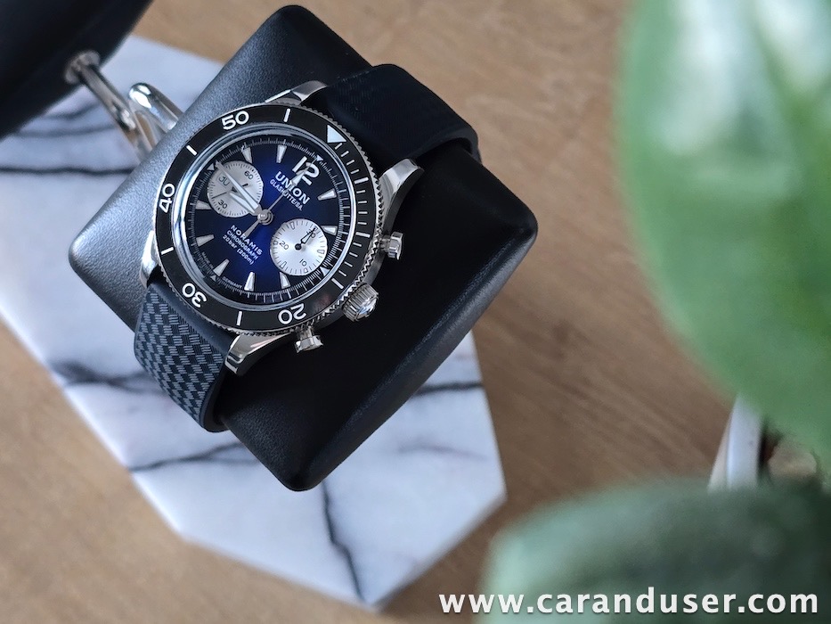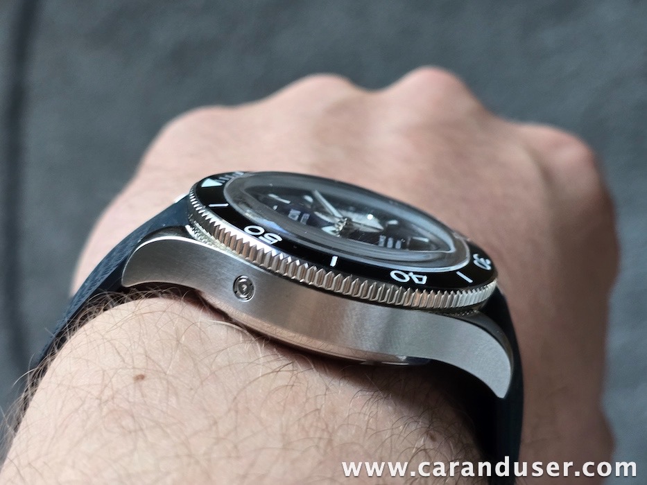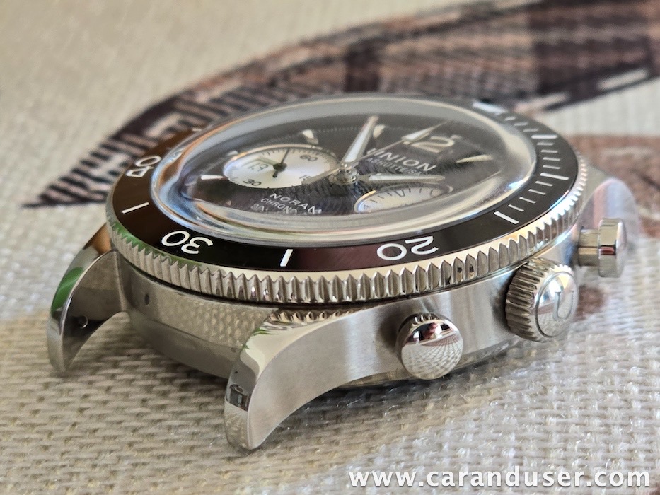 Ni ravno pogosta praksa, da se v potapljaški uri znajde kronografski mehanizem. Ne le, da se ni priporočljivo potapljati s časovnim pritiskom, ampak tudi gumbe kronografa se naj ne bi aktiviralo pod vodo. Potapljaški recept je torej nekako obrnjen na glavo, kar pa me spremeni dejstva, da me je ura dodobra očarala.