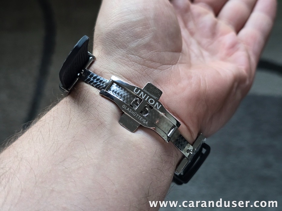 Ponovno se bom obregnil ob stvar, ki jo vedno znova poudarjam pri preizkusih ur znamke Union Glashütte. To je varnostna zaponka v obliki metulja. Deluje korektno, vendar se ne najbolj diskretno zloži ter posledično v debelino meri skoraj kot ohišje. Opcija je, da ugodno dokupite navadno zaponko in se znebite odvečnih milimetrov pod zapestjem.