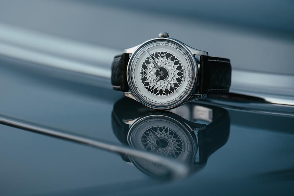 Tisto, kar je resnično pomembno, je številčnica s svojim kompleksnim 3D-učinkom, ki temelji na zasnovi znamenitega platišča BBS RS. Detajlno izdelana številčnica z kontrastnimi barvami ustvari tridimenzionalni občutek, vključno s 5 kolesnimi maticami na sredini. Datumsko okno je odlično integrirano, saj izkorišča zasnovo kolesa, tako da ne poruši simetrije.