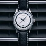 Številčnica modela Noramis Date Deutschland Klassik 2025 je elegantno oblikovana in na prvi pogled niti ne razkrije svojega avtomobilskega porekla, razen seveda, če niste bencinski manijak oziroma se spoznate na stare Mercedese. Skrata, mesto platišča, kjer je navadno logotip znamke, nadomešča izrez z osrednjimi kazalci ur, minut in sekund. Velja omeniti, da se ne smete ujeti v past, da bi lamele med 15 luknjami obravnavali kot indikatorje ur, saj je teh 15 in ne 12. Na prvi pogled zato branje ni najbolj intuitivno, saj bo za točen odčitek potrebno zaobiti še robno 60-minutno lestvico.