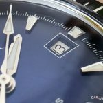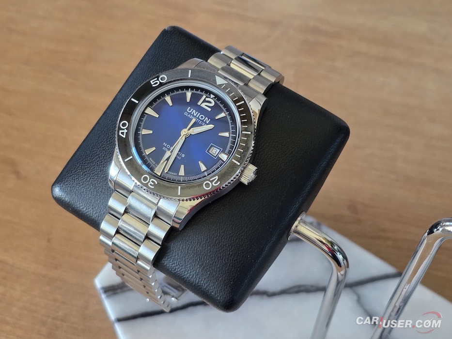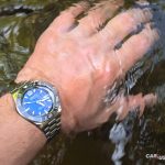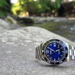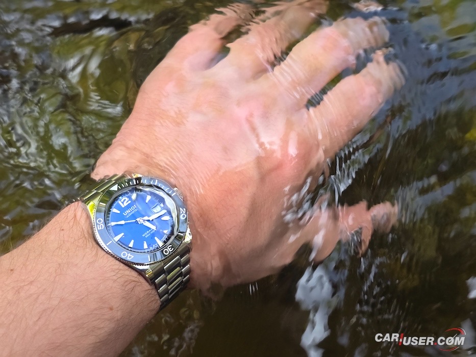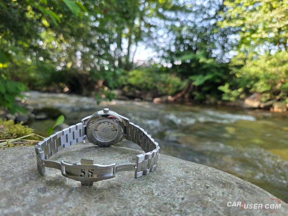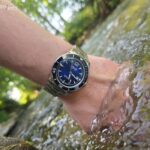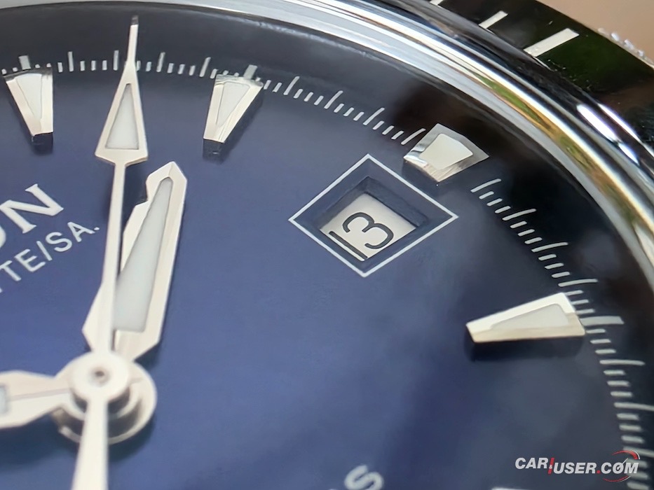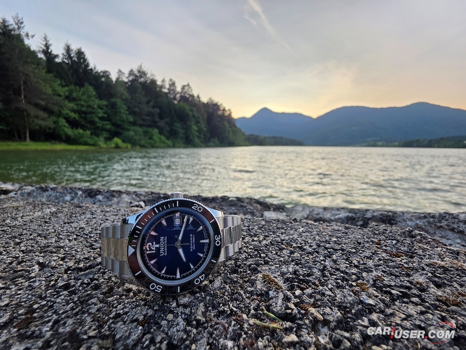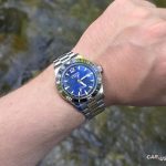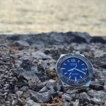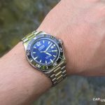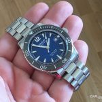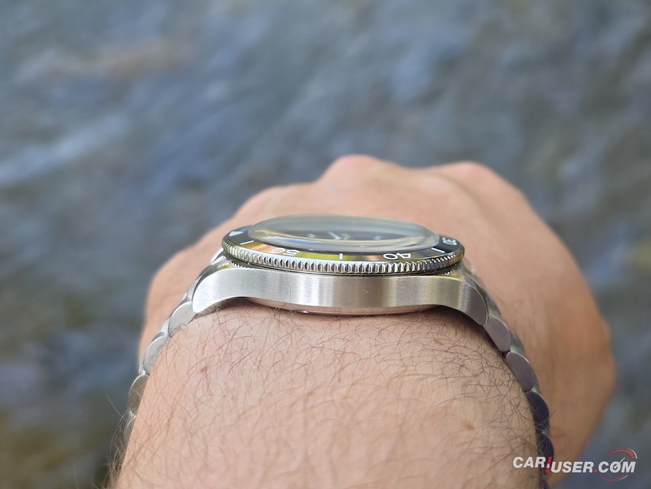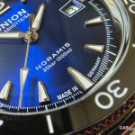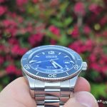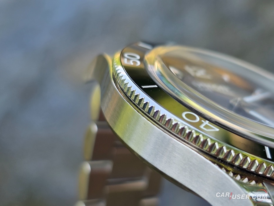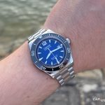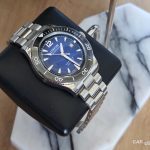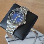 Če se poglobimo v samo uro, je na vrhu nazobčana luneta (120-klikov) z vstavkom črne keramične potapljaške lestvice, medtem ko sta na obeh straneh ohišja kosa safirnega kristala. Z njo boste lahko „tauhali“ do 200 metrov, dočim temno modro gradientno številčnico poudarjajo nikljevi urni kazalci, obdelani s tehnologijo Super-LumiNova, kakor so tudi indikatorji ur ter trikotnik na luneti za lažjo čitljivost ob slabih svetlobnih pogojih oziroma med potapljanjem. Okno z datumom ob 3. uri dodaja vsakdanjo praktičnost, dočim sta logotip in ime serije simetrično nameščena na številčnici.