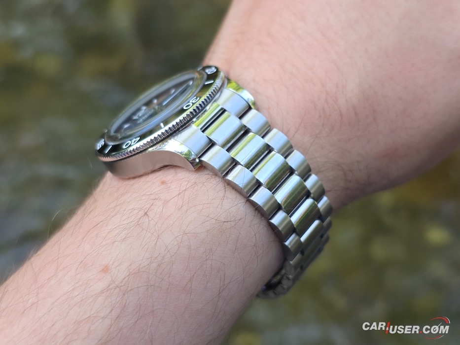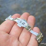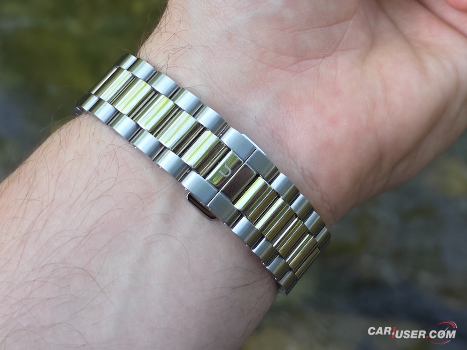 Člene zapestnice se sestavlja oziroma razstavlja z vijaki. Kanček ročnih spretnosti in asortima finega orodja. Zložljiva zaponka v stilu metulja dopolnjuje prestiž, saj se v zaprtem položaju popolnoma zlije okoli zapestja. Brez izboklin zaponke na zapestju. Na tem mestu še velja pohvaliti ”trdoživost” zapestnice, saj se praska pridela le z naporom.