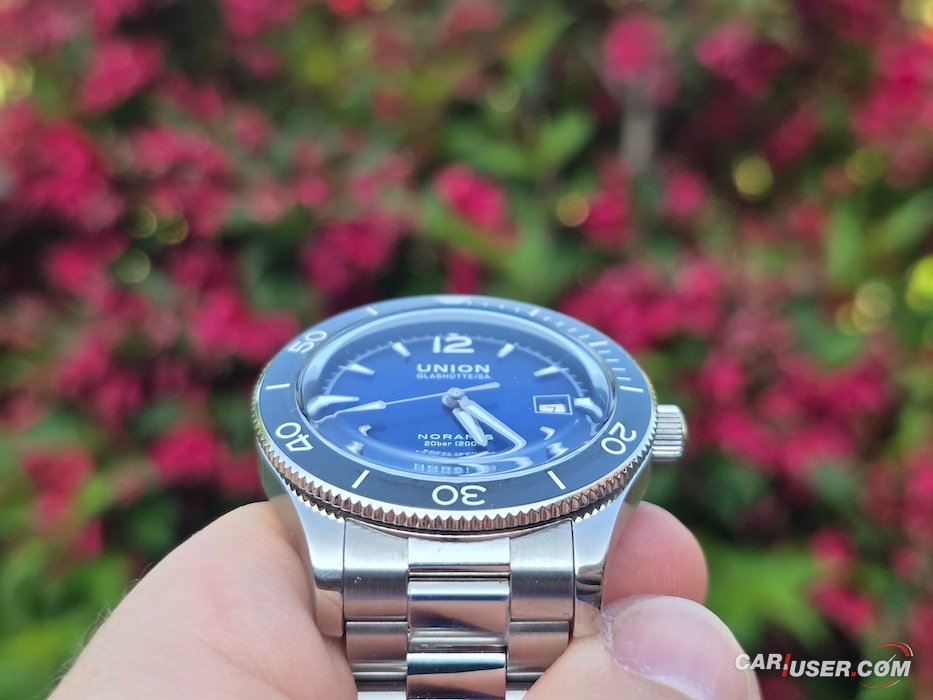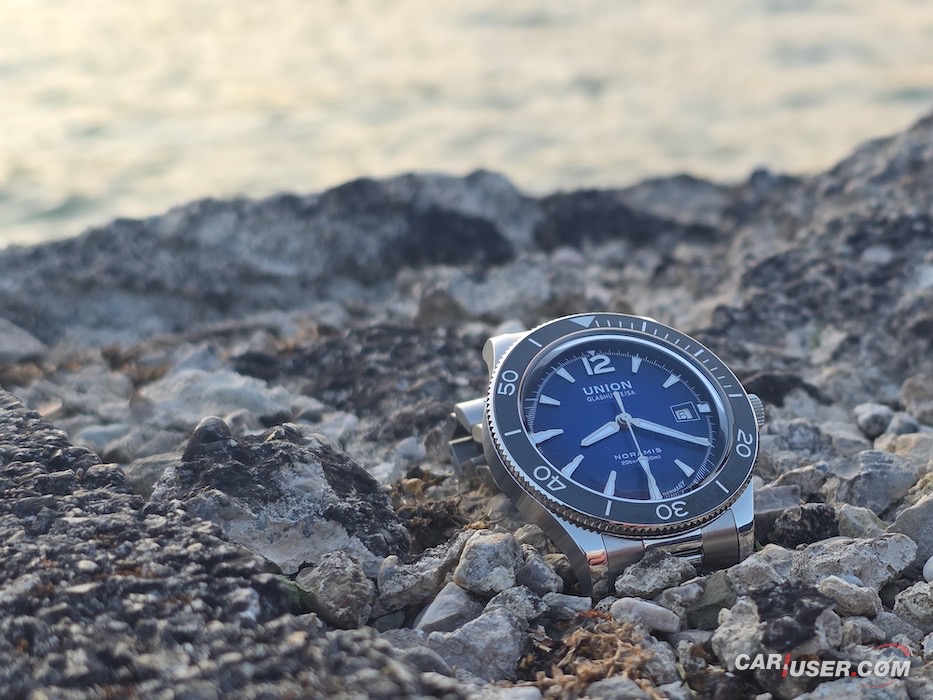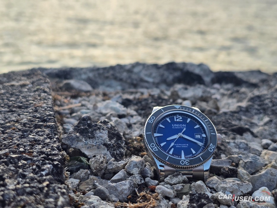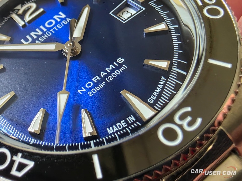Priznam, da nisem na prvo žogo razumel, kaj je hotel povedati z absenco krogcev. A kmalu je kolesje mojih sivih celic zaželo gnati in sem razvozlal, da kolega cilja na indikatorje ur na številčnici nošenega časomera Union Glashütte Noramis Date Sport. Všečnost linije smo v uredništvu že pobližje spoznali v lanskem letu, ko smo preizkušali model Noramis Chronograph Sport. No, za letošnje poletje pa je nemška manufaktura potapljaški portfelj nadgradila s čudovito tričlensko zapestnico.