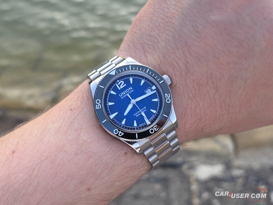 Noramis Date Sport bo po godu moškim, ki prisegajo na bolj robat videz, a še vedno ne izstopa toliko, da ne bi uspela biti edina ura v vaši omari. Z 42 mm premerom ohišja iz nerjavečega jekla z debelino 12,85 mm sodi v t. i. „sweet spot“, ki tudi ob dolžini 49 mm ne bo često segala čez zapestje, zavoljo ukrivljenih ”ušes” (ta se ergonomsko prilegajo zapestju). Posledično potapljaška ura na moških z bolj damskimi zapestji ne izpade kot vekarica, prav tako pa tudi pri tistih, ki imajo bolj konkretna zapestja, ne bo izgledala kot zapestnica. Prav neverjetno se je zlila z mojim zapestjem premera 20 cm. 155 g mase s papirja se na zapestju ne čuti toliko, res pa je, da sem navajen imeti nekaj na roki. Prej me iztiri, če si zjutraj pozabim na levo zapestje povezniti časomer …