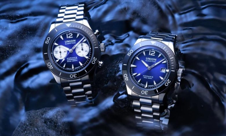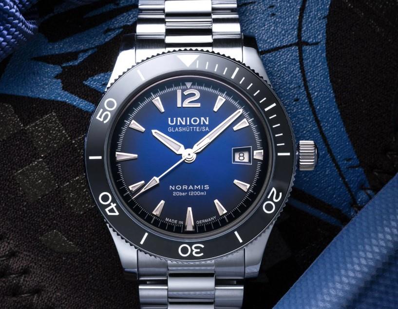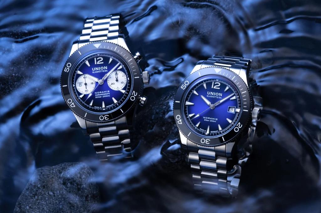 Medtem ko so mnogi že začeli oblikovati svojo postavo za prihajajoče poletje, so urarji zavihali rokave ter pripravili modne dodatke za dneve na plaži. Nemšku Union Glashütte je v ta namen posodobil potapljaški uri linije Noramis. Tako datumski kot kronografski model imata znano gradientno modro številčnico, ki je zdaj združena z elegantno zapestnico.