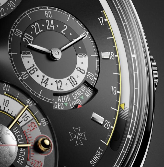 Številke govorijo same zase. Solaria, ki jo je en urar razvijal osem let, ima 41 zapletov na dveh številčnicah za katere je bilo potrebnih 13 patentnih prijav. Ohišje gosti 1.521 sestavnih delov mehanizma, ki meddrugim služijo za prikaz pet redkih astronomskih zapletov, vključno s časovnim sledenjem nebesnim telesom (svetovna premiera) s kronografom z deljenimi sekundami, večni koledar z luninimi menami ter meritvami plimovanja, GMT, da ne omenjamp še Westminstrskega minutnega repeaterja – vse našteto je združeno v novi kaliber 3655, ki se nahaja premeru ohišja 45 mm ter zgolj 14, 99 mm debeline. Z drugimi besedami so dimenzije ohišja iz belega zlata bolj kompaktne kot večine potapljaških ur ali dirkalnih kronografov.