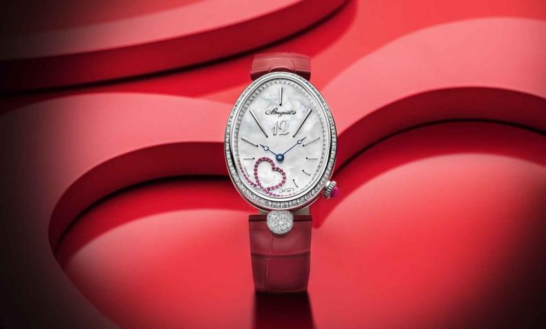 Za valentinovo, kot vsako leto doslej, Breguet predstavlja izvenserijski damski časomer s perletinsko številčnico, bleščečimi diamanti ter romantičnimi roza safirji in rdečimi rubini.