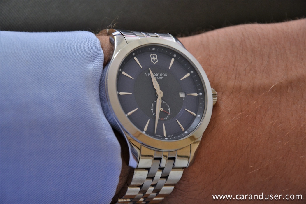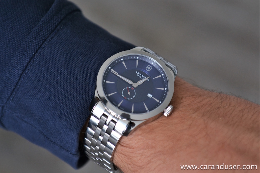 Nedavno sem na zapestju nosil Victorinoxa, ki bi lahko bil dober kandidat, za dopolnitev mehanske kolekcije oziroma edina ura, ki jo boste kdajkoli potrebovali. Vas zanima zakaj? Enostavno zato, ker je model Alliance tako vsestranski, brez aktualnih vplivov oblikovalskih smernic urarske branže (skeletne številčnice, različne oblike ohišij, igranje z materiali, preveč zelene). Kovinsko ohišje v premer meri 44 milimetrov, kar je resda primernejše za zapestja z obsegom nad 16 centimetrov, vendar Victorinox ta model ponuja tudi v manjši dimenziji, kot tudi različnih barvnih kombinacijah.