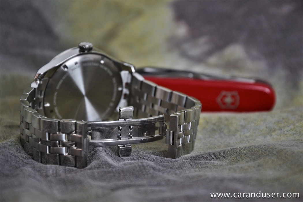 Sam ostajam mnenja, da je preizkušena kombinacija najbolj obstojna. ‘Evergreen’. Temno modra številčnica nikoli ne bo šla iz mode, in hkrati venomer nosača navduši s svojim izgledom. Enostavnost začinijo indikatorji ur, logotip znamke namesto indikatorja 12. ure, okence datuma ob 3. uri, prikaz sekund na manjšem števcu v spodnjem predelu številčnice ter 60-minutna skala ob samem robu številčnice. K napisu Victorinox je dodan pripis Swiss Army, če bi slučajno pozabili, iz kakšnega ‘testa’ je ta ura.