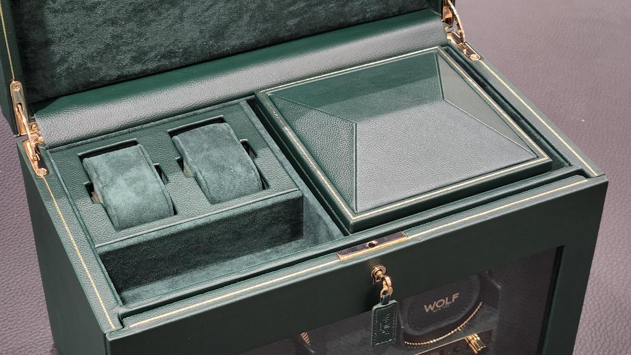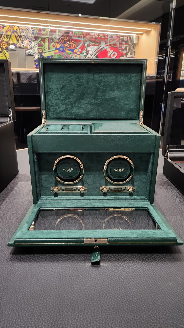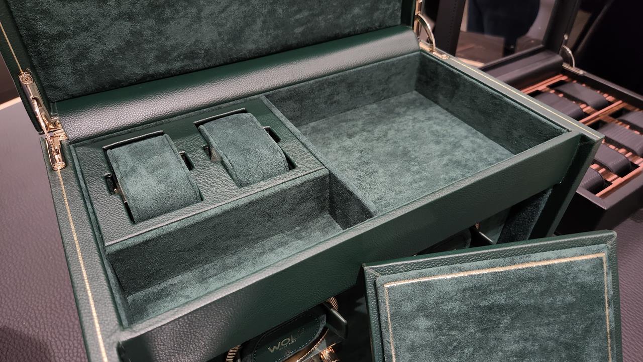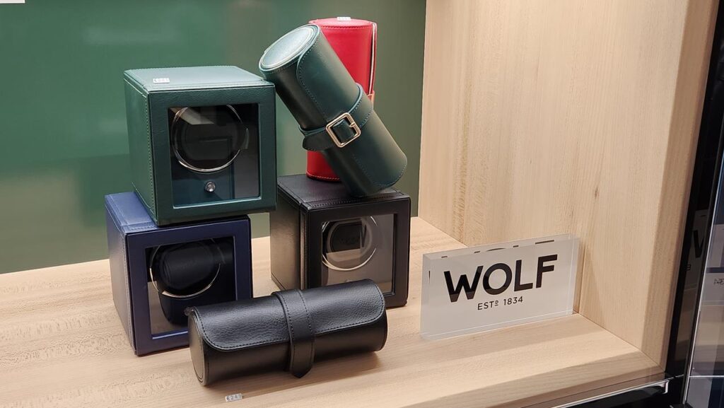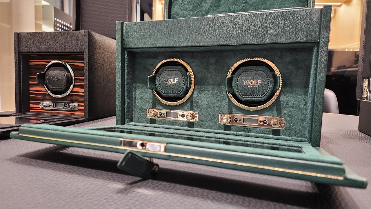 Podoben nivo kvalitete izdelave ter izbire materialov gre pričakovati tudi pri ostalih artiklih v portfelju Wolfa, o čemer smo se mimogrede prepričali med ogledom izložbe. V kolekciji Wolf 1834 ljubitelji ur (in avtomobilov) nikakor ne bodo ostali ravnodušni, saj ponujajo veliko izbiro rolic, škatel, navijalcev, kombinacijo obojega … Velja še omeniti, da bodo, kot že prej omenjeno, lubitelji avtomobilov svoj navdih našli v zelenih škatlah, ki so poimenovane po British Racingu in so zares nekaj posebnega.