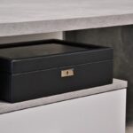 Poleg steklenega pokrova (skozi katerega lahko občudujete svojo urarsko zbirko), je tu še sistem za mehko zapiranje, ki bo še nekoliko podaljšal življenjsko dobo škatle. Ključavnica sicer nepridipravov ne bo zadržala več kot nekaj sekund, je pa vseeno več kot dobrodošla, da vam vaši prijatelji ali družinski člani ne “štafnajo” po urah. Tisti, ki prisegate na pametne ure imate na zadnji strani dodano odprtino za kabel, s katerim lahko polnite vaše pametne ali športne ure.