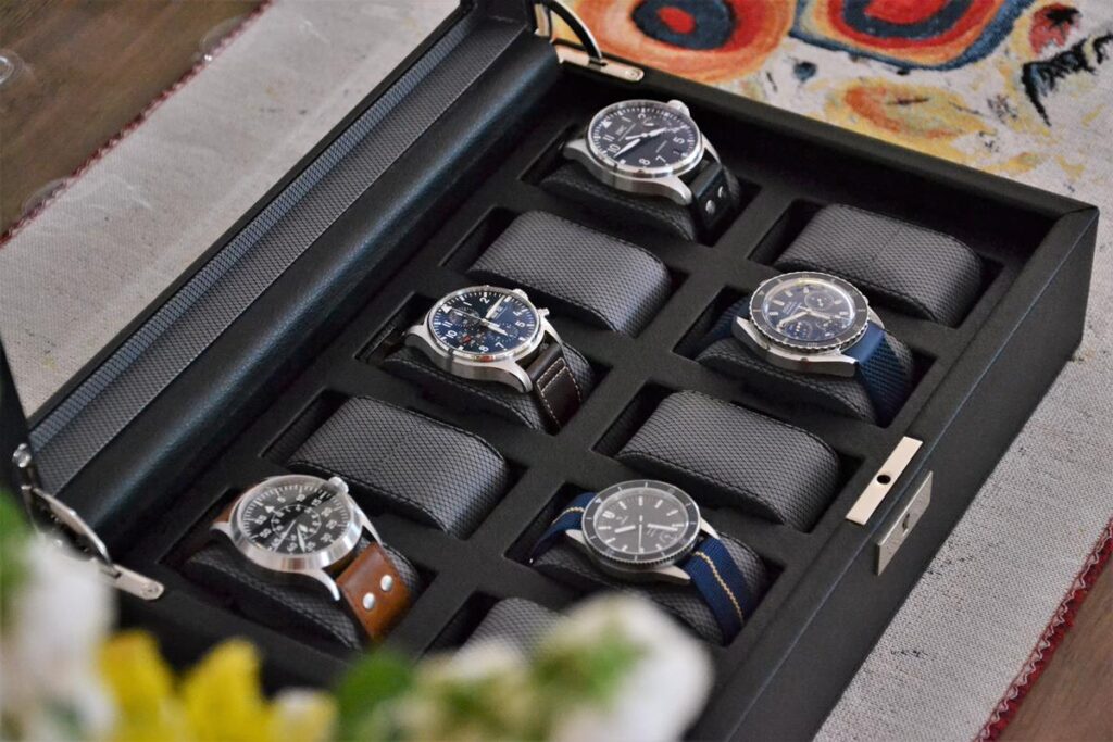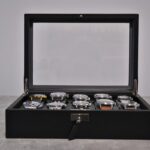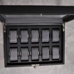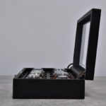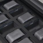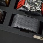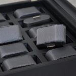 In res. Imeli smo prav! Škatla že na otip opraviči svojo ceno. Narejena je iz veganskega usnja v njej pa se skriva 10 blazinic, kamor boste lahko nataknili svoje ure. Blazinice imajo zanimiv sistem, saj se ob pritisku zožijo in delujejo kot nekakšen meh. Takšen način je zagotovo sila priročen, če imate ure na kovinskih zapestnicah, saj omogočajo precej prilagodljivosti.