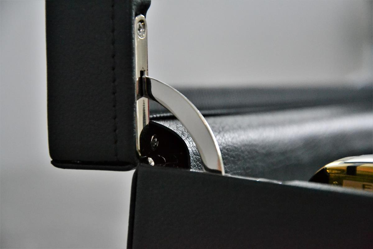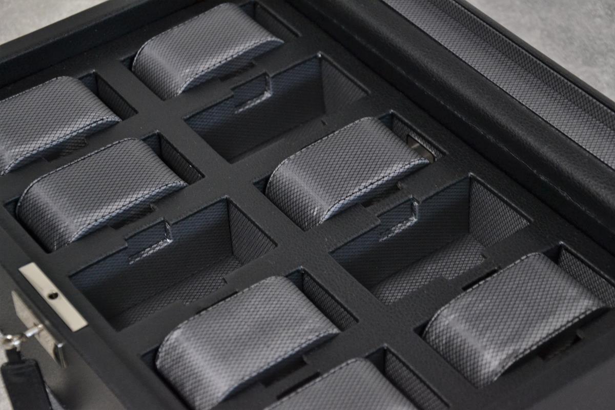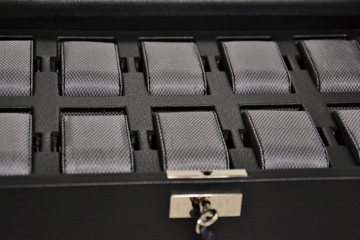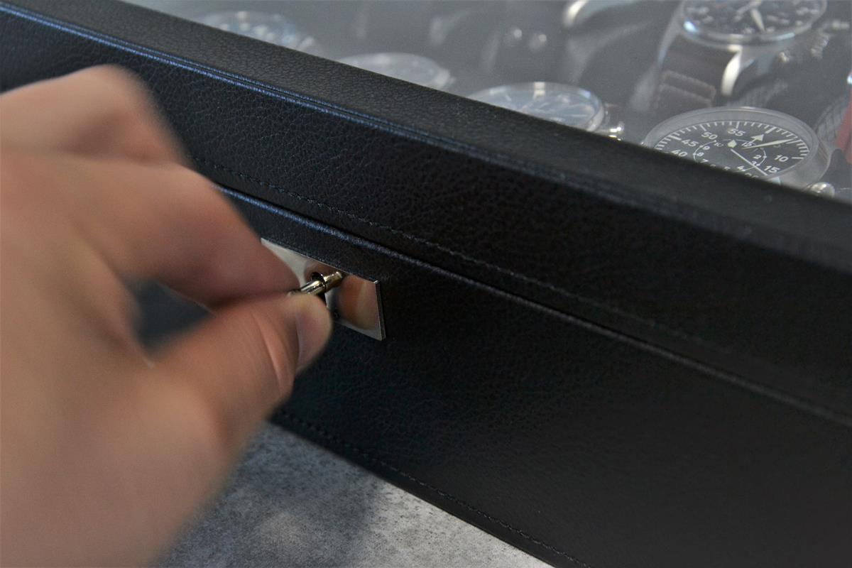 Poleg steklenega pokrova (skozi katerega lahko občudujete svojo urarsko zbirko), je tu še sistem za mehko zapiranje, ki bo še nekoliko podaljšal življenjsko dobo škatle. Ključavnica sicer nepridipravov ne bo zadržala več kot nekaj sekund, je pa vseeno več kot dobrodošla, da vam vaši prijatelji ali družinski člani ne “štafnajo” po urah. Tisti, ki prisegate na pametne ure imate na zadnji strani dodano odprtino za kabel, s katerim lahko polnite vaše pametne ali športne ure.